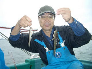 朝一で出船。本日のお客様10名様程乗船頂きました。 海がまだ不慣れという事もあり最初は波の少ない所でやって欲しいとの事でしたのでまず最初に選んだのが浦安行徳の河口付近。で始めたのですがなぜか絶好調であるはずのハゼ君なかなか口を使わずあの手この手で攻めて見たのですがやっと釣れるのは小さな幼稚園生程度・・あ〜〜〜 お客様かなり船に慣れてきて表に出てもいいよという事で一旦表に出ていざ本命の木更津へ・・・ |