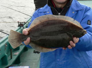 | その後ポツリポツリではありましたが結構当たりがあり、餌はとられるもののなかなか釣れ上がりません。 やっと掛かったと思いきやふぐの仕業と分かり残念。 そんなこんなで本日のカレイ釣りは終了となりました。本命狙いとはいえ、少し残念な気がしました。少し時期的に遅れているのかな?。僚船はまだキス釣りの方で頑張っているようで結構な釣果をあげているようでした。 |