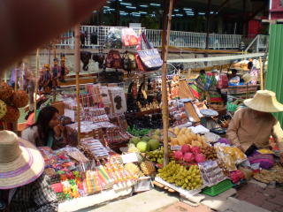 タイのダムヌンサドゥアク水上マーケットでの様子多くの品物が沢山並んでいます