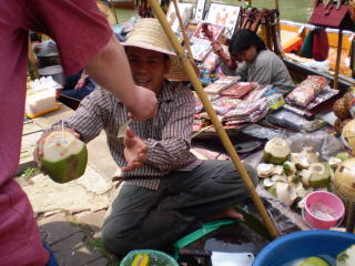 バンコクからワゴンタクシーを貸切で約1時間走行後 水上マーケットにての1枚