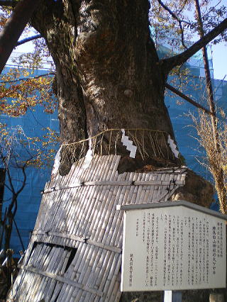 社の境内の中には大きなケヤキの木が2本ありました永保3年(1083年)源義家が奥州征伐に下る時勝利を祈願してここに奉納したと伝えられているそうです、なおこの付近から弘安4年(1281年)多くの板碑が発掘されていて鎌倉時代には多くの人の集落があったそうです。