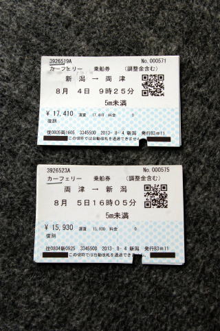 まずはルートとして新潟港より佐渡汽船に車と共に乗船です