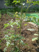 2008年6月21日現在のトマト、ナスの様子です。昨年もナスは作りましたので今年も3本程植えました。